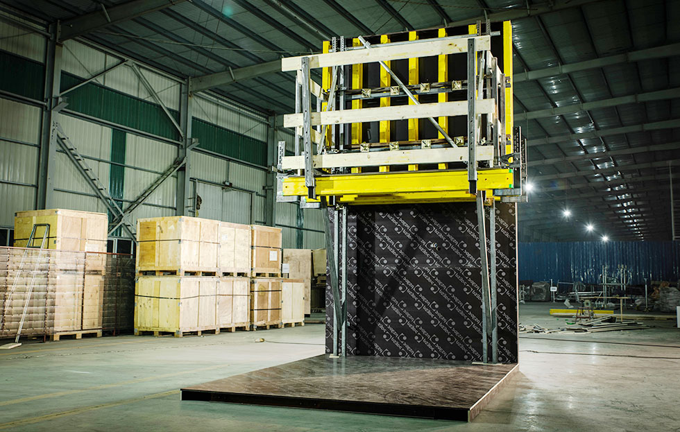 (2) Plataforma de eje – para soportar el encofrado de las escaleras y los ejes de elevación. El reposicionamiento de la plataforma y el encofrado solo requiere que el encofrado de la pared esté ligeramente separado del hormigón.