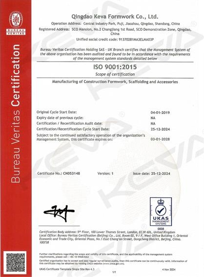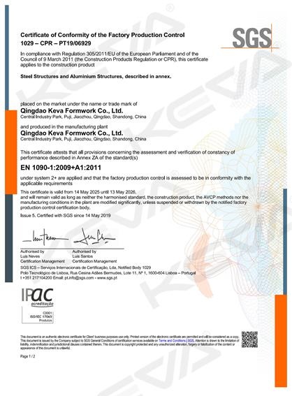 Nuestra fábrica de encofrados y andamios se enorgullece de contar con las certificaciones EN 1090 Partes 1 y 2 EXC 3 e ISO 9001: 2015. El sistema de andamios ringlock HILONG también ha sido aprobado por la norma AS / NZS 1576 por SGS.
